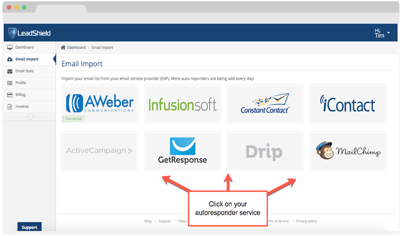 1. Connect your autoresponder or CRM in 3 simple clicks.