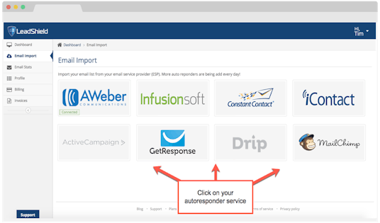 1. Connect your autoresponder or CRM in 3 simple clicks.